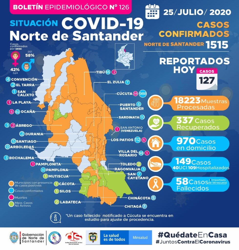27 nuevos casos de Covid – 19 en Norte de Santander – reporte IDS julio 25, 2020 Haga su Comentario Compartir Facebook Twitter Compartir Facebook Twitter