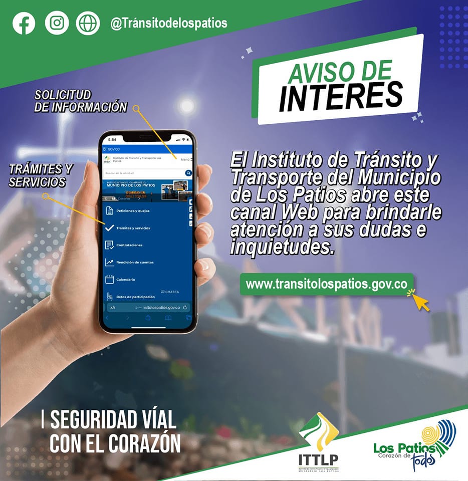 Se le informa a toda la comunidad patiense que se abre el sitio web oficial donde se podrán atender todas las solicitudes de peticiones, quejas, reclamos, sugerencias y felicitaciones, en pro a mejorar al máximo nuestros servicios para brindarles una mayor información y atención. Lo invitamos para que a través del canal de atención de la página del Instituto de Tránsito y Transporte, sus solicitudes puedan ser atendidas.