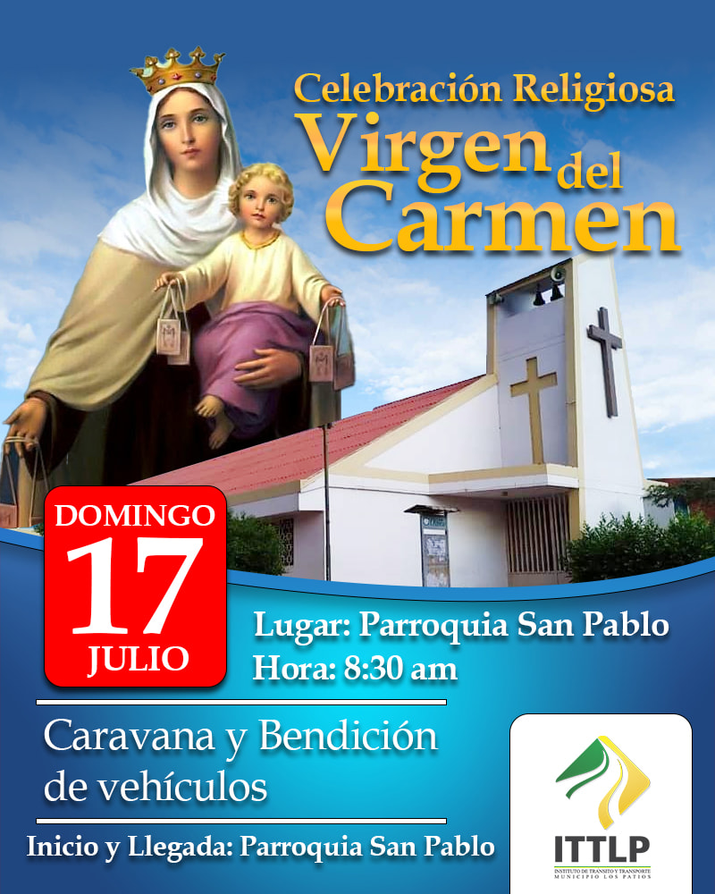 El Instituto de Tránsito Los Patios invita a los conductores a participar de la eucaristía y caravana en honor a la virgen del carmen.