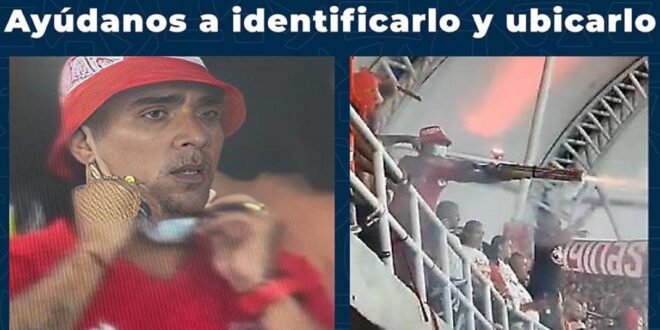 La Secretaría de Seguridad de Cali ha publicado la imagen de un hombre que es señalado como el responsable de disparar pólvora con un arma durante los disturbios ocurridos en el estadio Pascual Guerrero, el pasado 15 de diciembre, después del partido entre el América de Cali y Atlético Nacional.