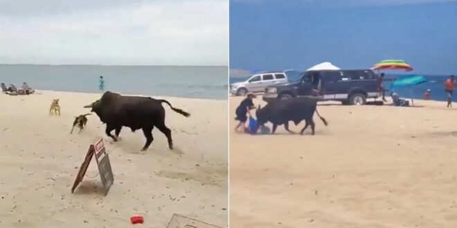 El video no muestra si la mujer resultó gravemente herida tras el ataque, y finalmente, el toro abandonó la playa siendo perseguido por los perros.