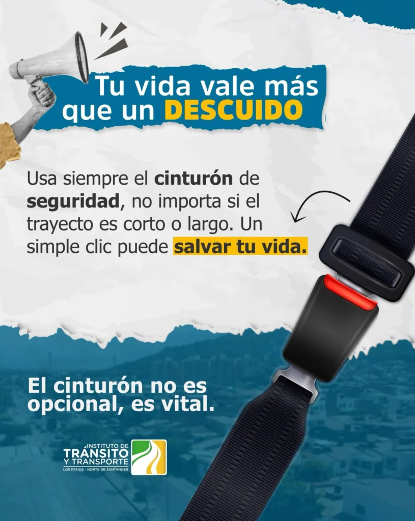 No arriesgues tu vida por un descuido. Usa siempre el cinturón de seguridad, sin importar la distancia. Porque la prevención no es opcional, es vital.